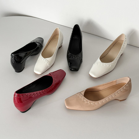 平底单鞋女金属装饰百搭方头奶奶鞋气质晚风低跟浅口飘鞋