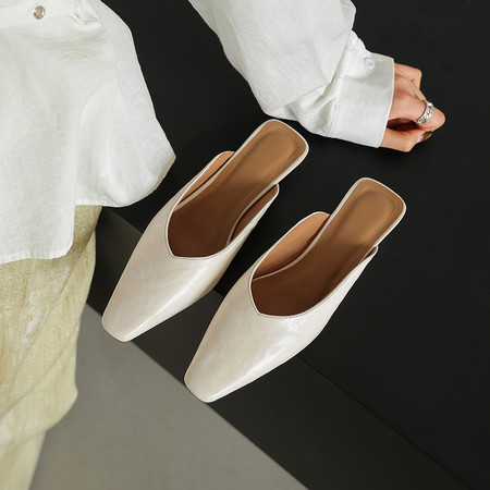 头层牛皮尖头复古单鞋高跟鞋通勤鞋包头凉鞋